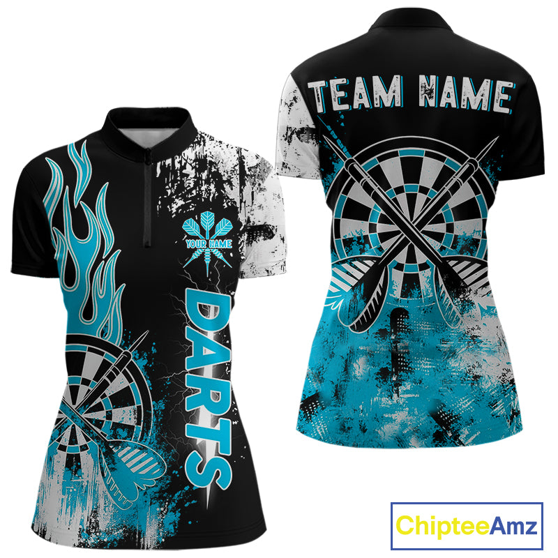 Personalized Blue Grunge Womens Dart Shirts Custom Dart Jerseys Team Polo & 1/4 Zip, Darts Uniform TDM5122