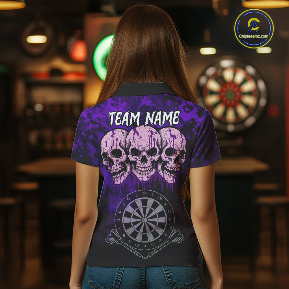 Black And Purple Grunge Skull Womens Dart Shirts Custom Dart Jerseys Team Polo & Quarter Zip TDM5128