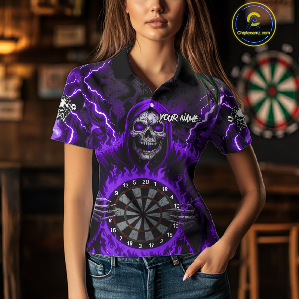 Purple Grim Reaper Thunder Lightning Women Dart Shirts Custom Flame Dart Jerseys Team Polo & 1/4 Zip TDM5176