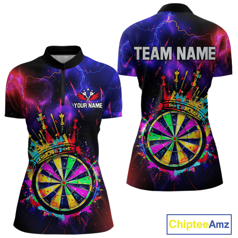 Personalized Neon Colorful Crown Darts Shirt For Women Custom Funny Darts Jersey Polo & 1/4 Zip TDM5181