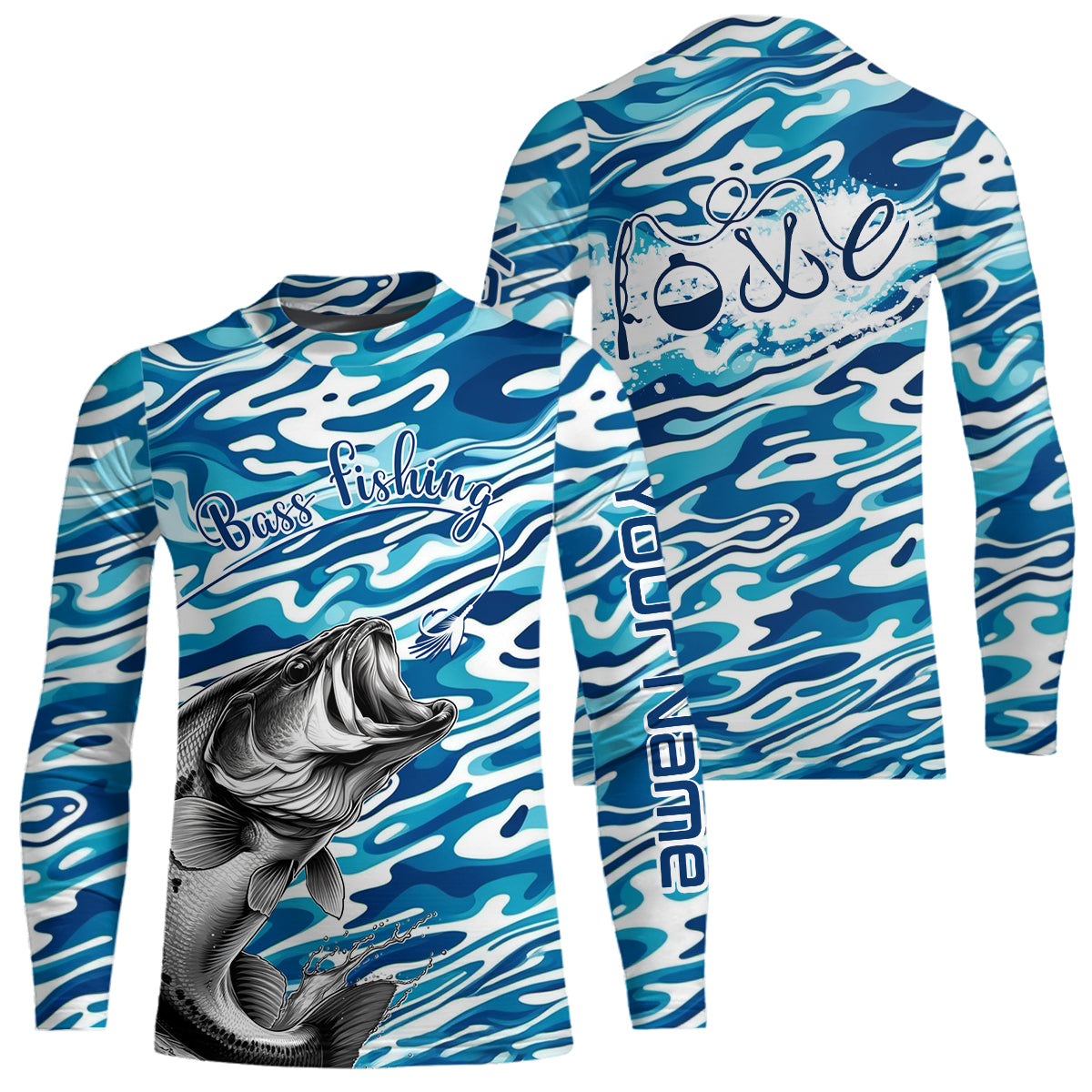 Bass Fishing Love Water Camouflage Customize Shirts For Men And Women Personalized Fishing Gift | Blue YYD0049