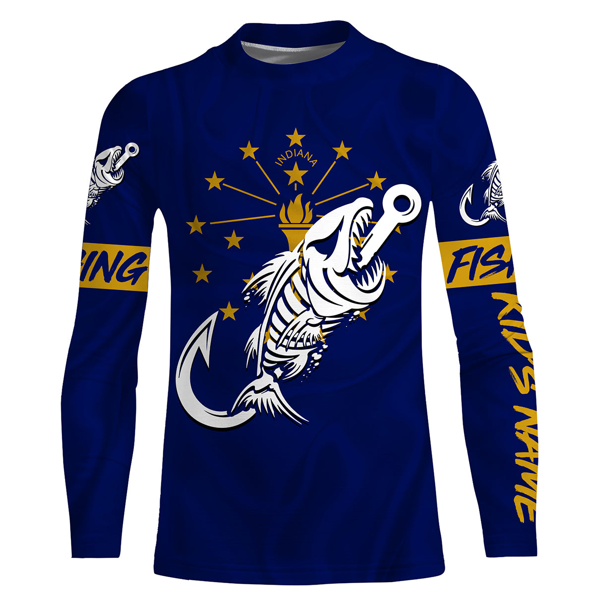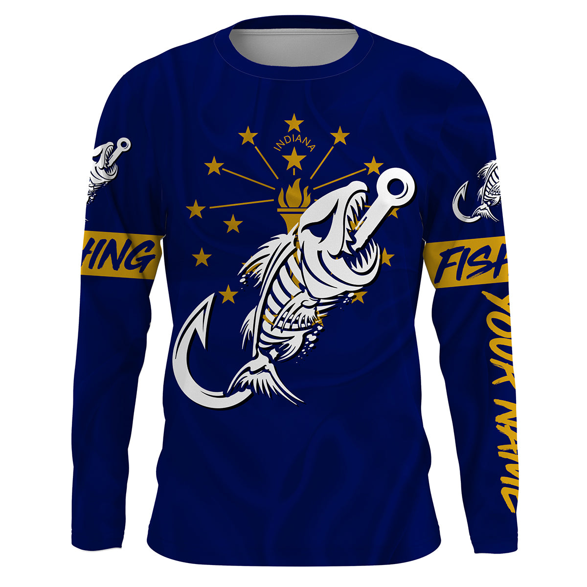 IN Fishing Custom Indiana Flag Fish hook skull Custom sun protection fishing shirts for men, women NQS3347