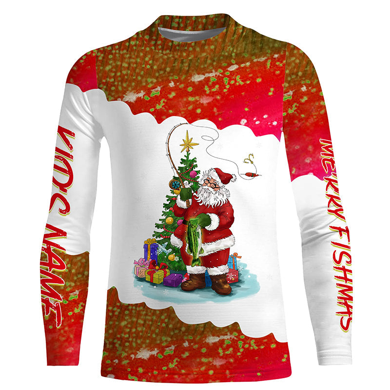 Merry fishmas Santa fishing Custom sun protection Long sleeve Fishing Shirts, Christmas Fishing Gift NQS4431