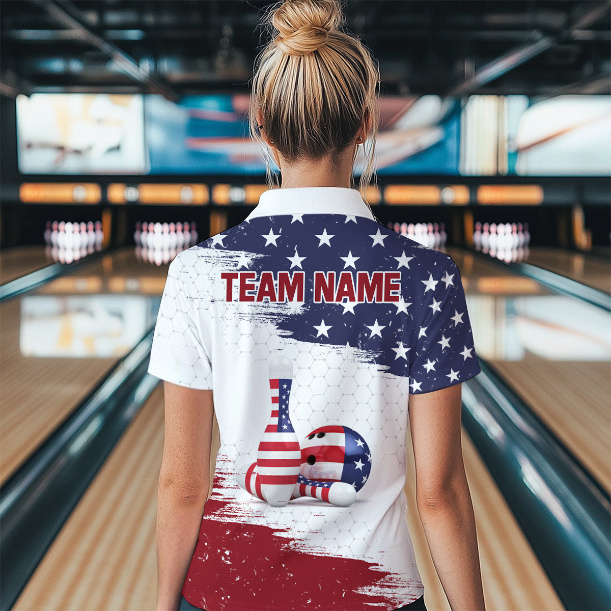 American Flag Bowling Polo Shirt Custom Bowling Jersey for Women Bowling Team League QZT52
