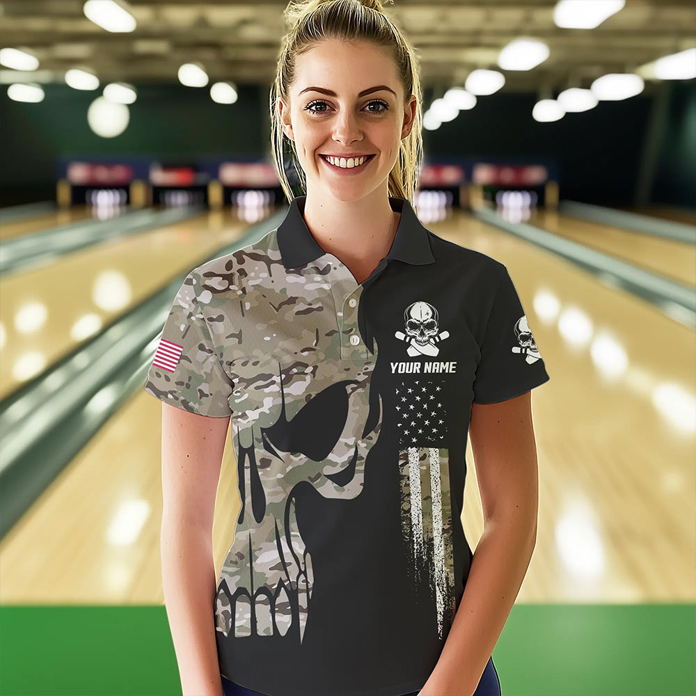 Skull Camouflage American Flag Womens Bowling Shirts Custom Patriotic Bowling Team Jerseys For Ladies NQS9508