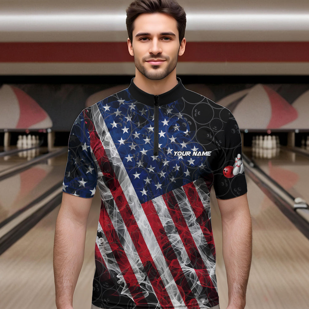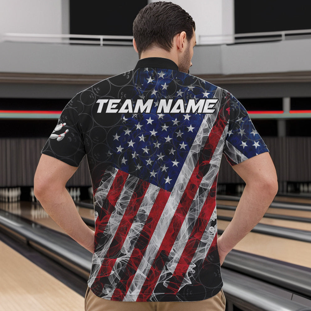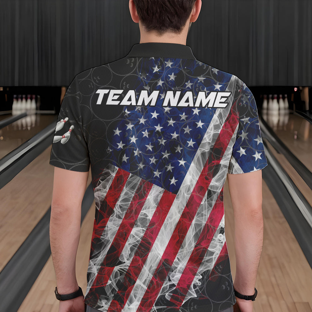 Smoke American Flag Black Bowling Camo shirts for men Custom patriotic Team bowling jersey NQS9779