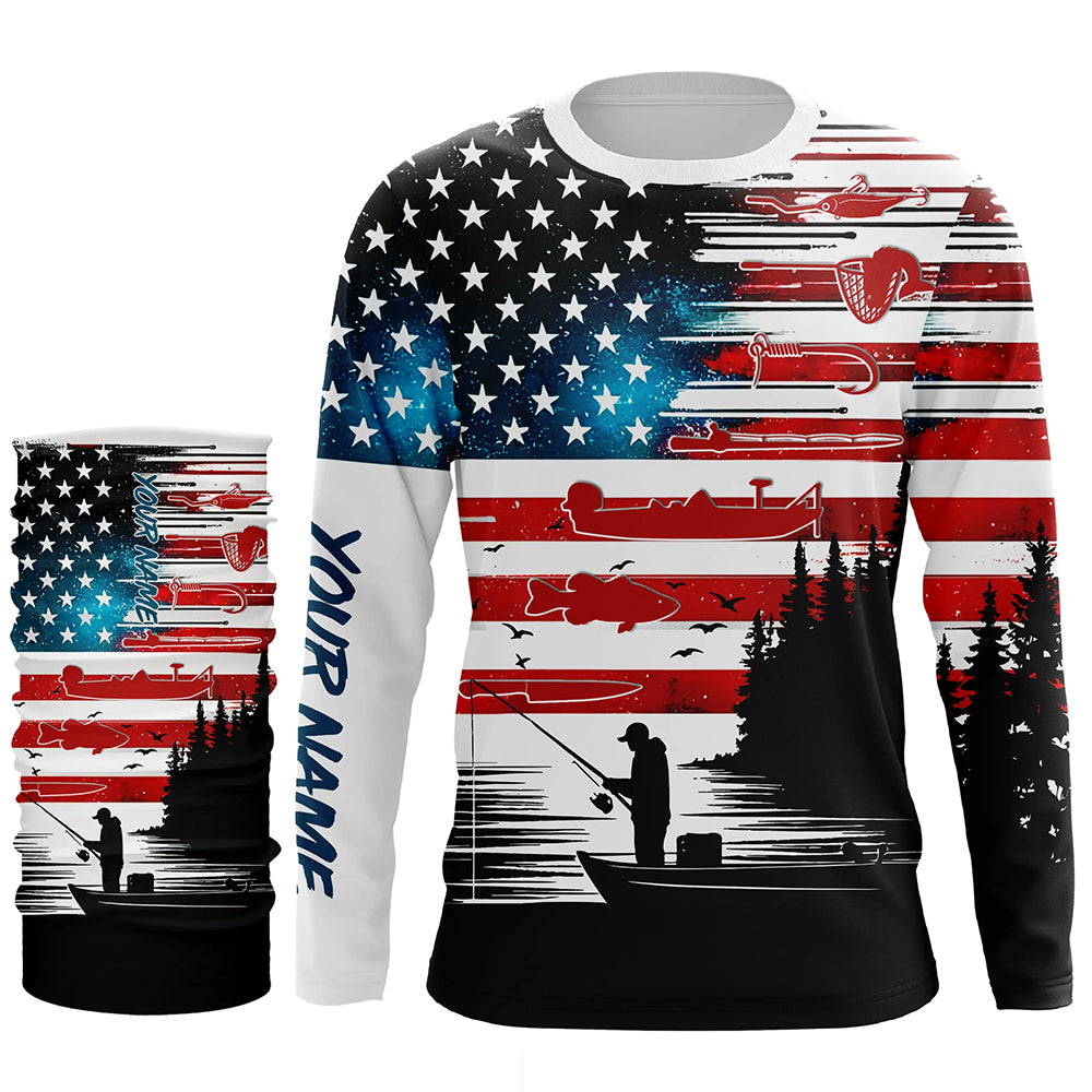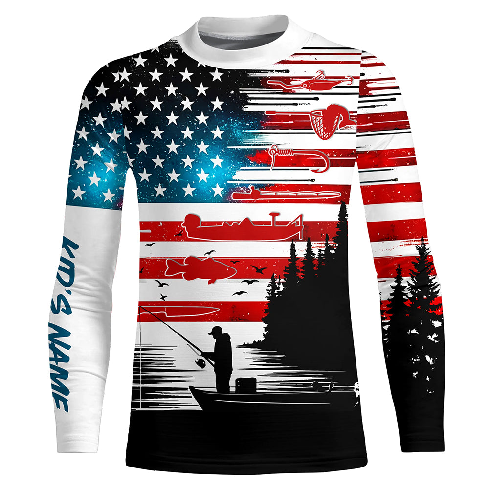 USA flag long sleeve fishing shirt UV protection personalized fishing shirt A71