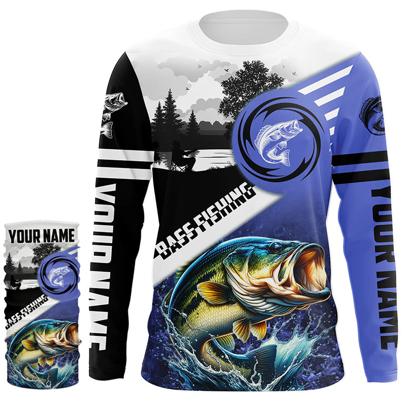 Largemouth Bass Fishing Blue performance fishing shirt UV protection custom name long sleeves NQS2121