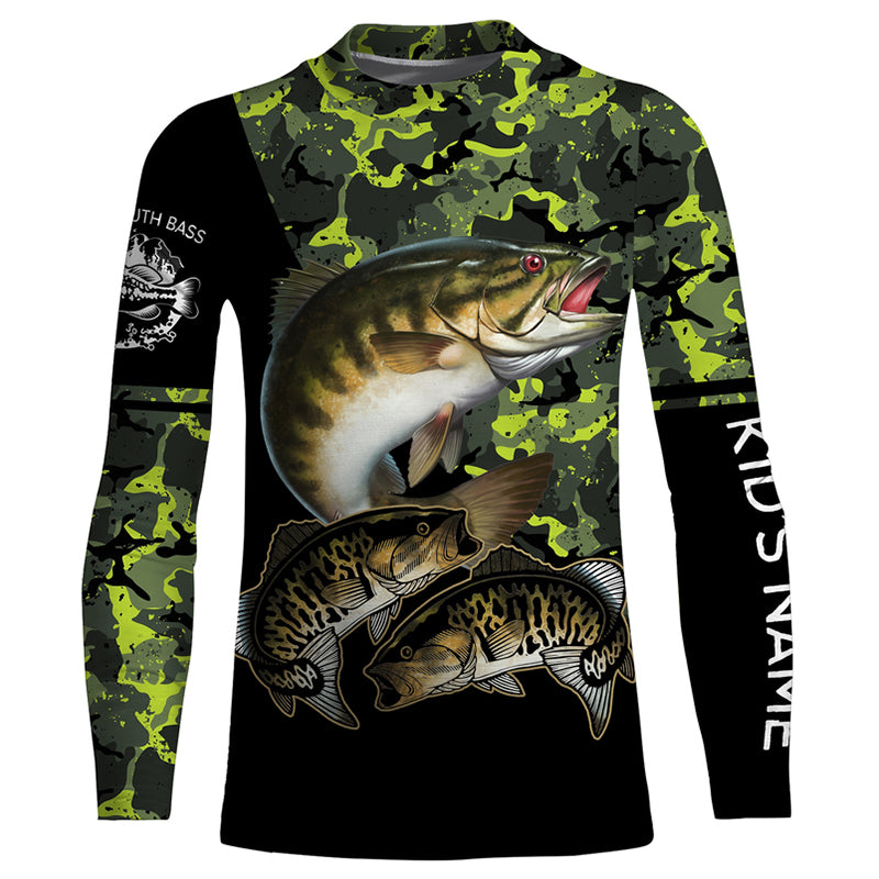 Smallmouth Bass fishing black green camo custom name sun protection long sleeve fishing shirts NQS3869