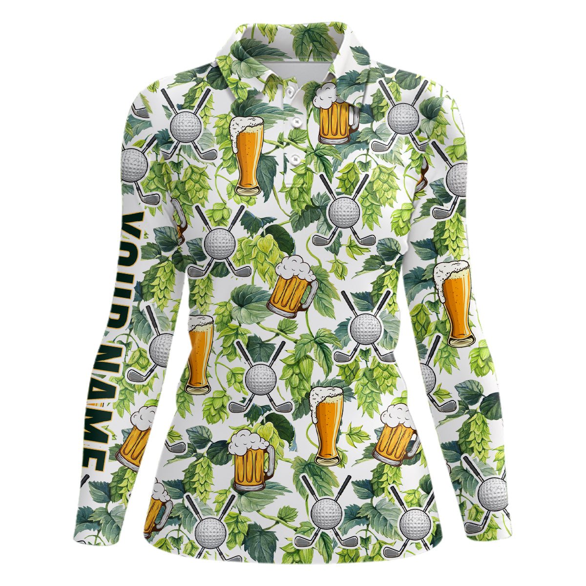 Funny Golf beer green tropical pattern custom Womens golf polo shirt, golf tops for ladies golf gifts NQS6828