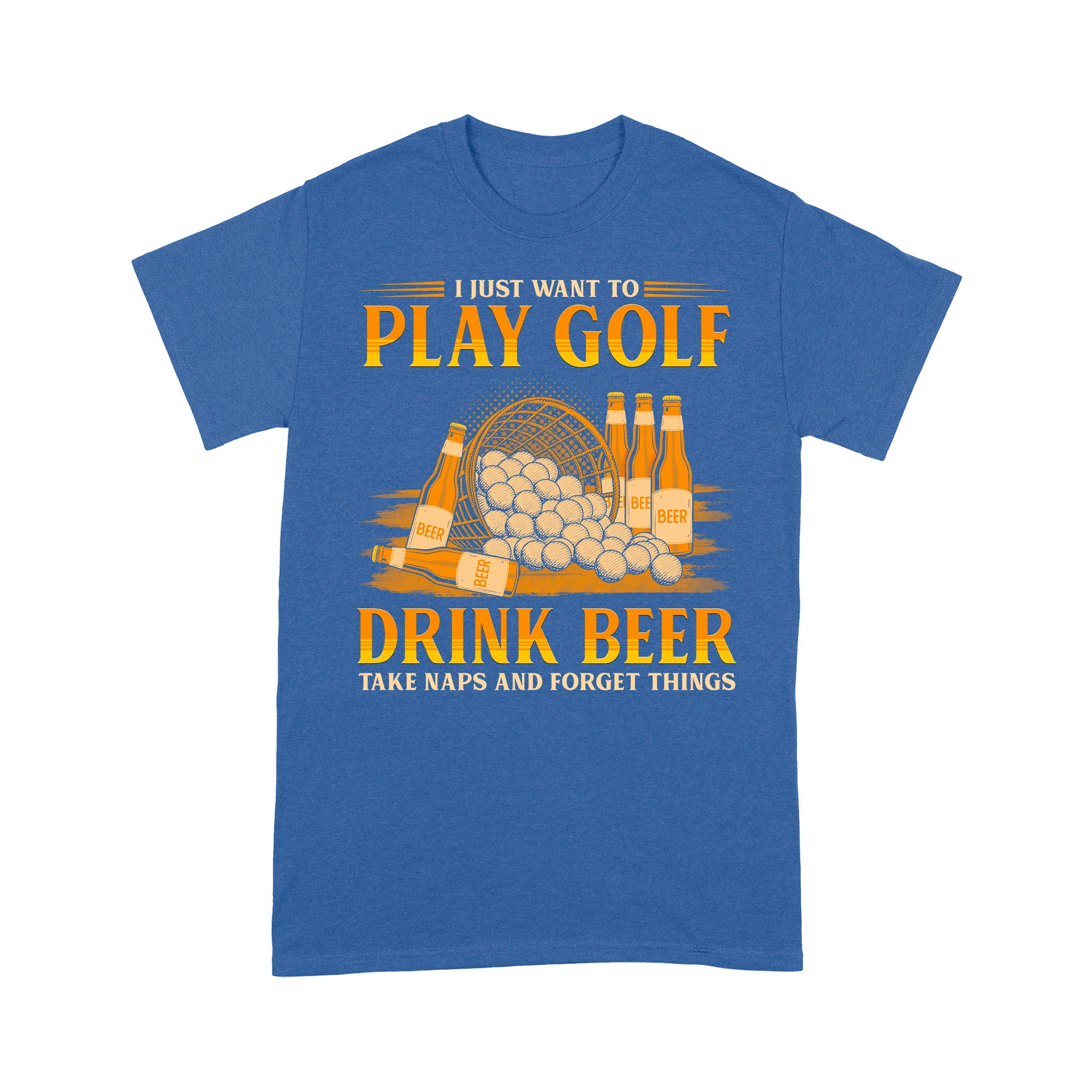 Funny golf T-shirt I just want to drink golf drink beer take naps and forget things NQS4768