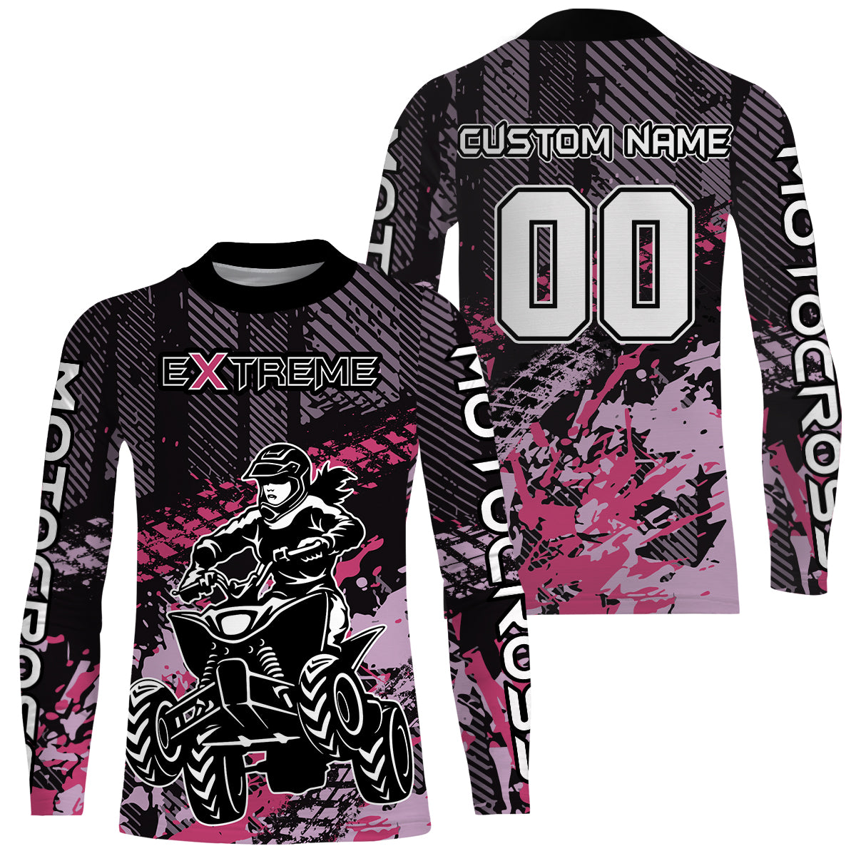 ATV Quad Bike Jersey ATV Racing Shirt Kid Girl Women Upf30+ ATV Quad Shirt Pink MX78