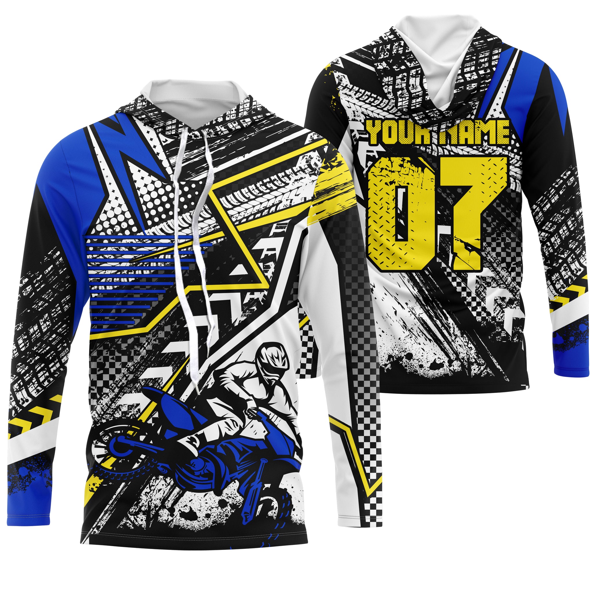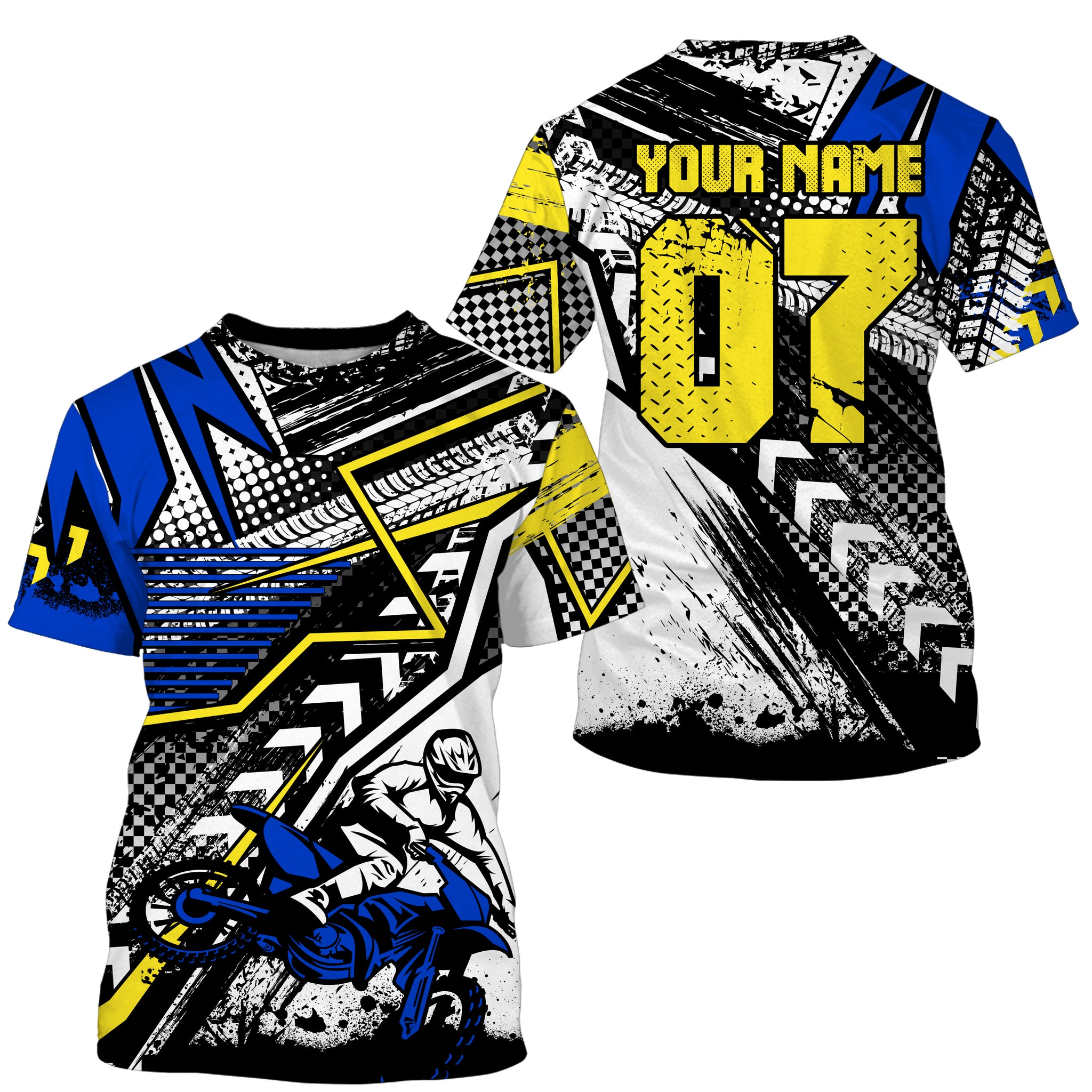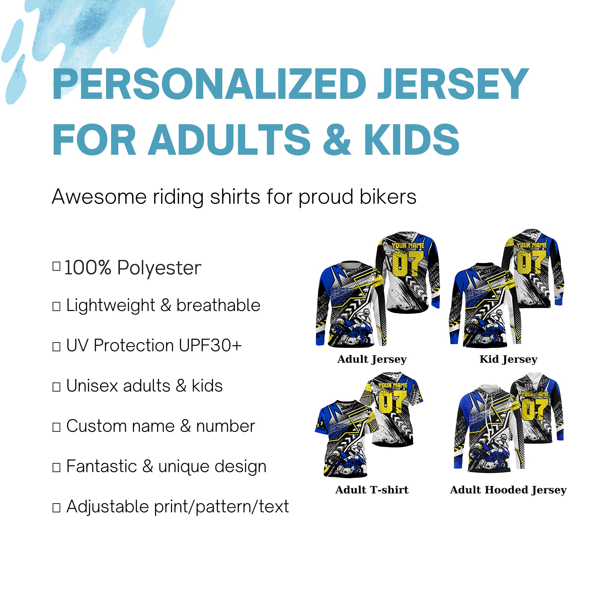 Blue Motocross jersey youth kid adult dirt bike custom UPF30+ MX riding extreme shirt motorcycle PDT93
