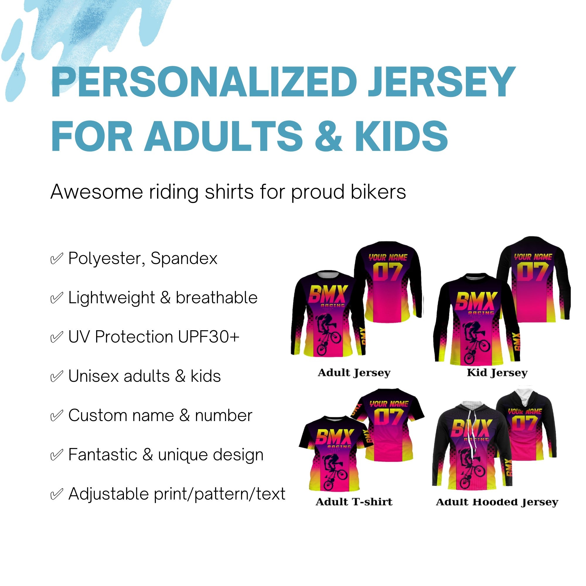 Personalized Pink BMX jersey adult kid bike shirts UPF30+ Freestyle cycling bicycle motocross gear| SLC43
