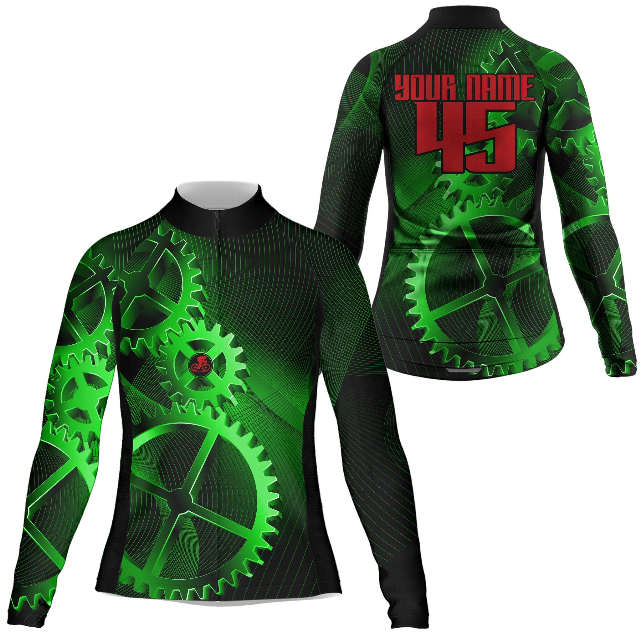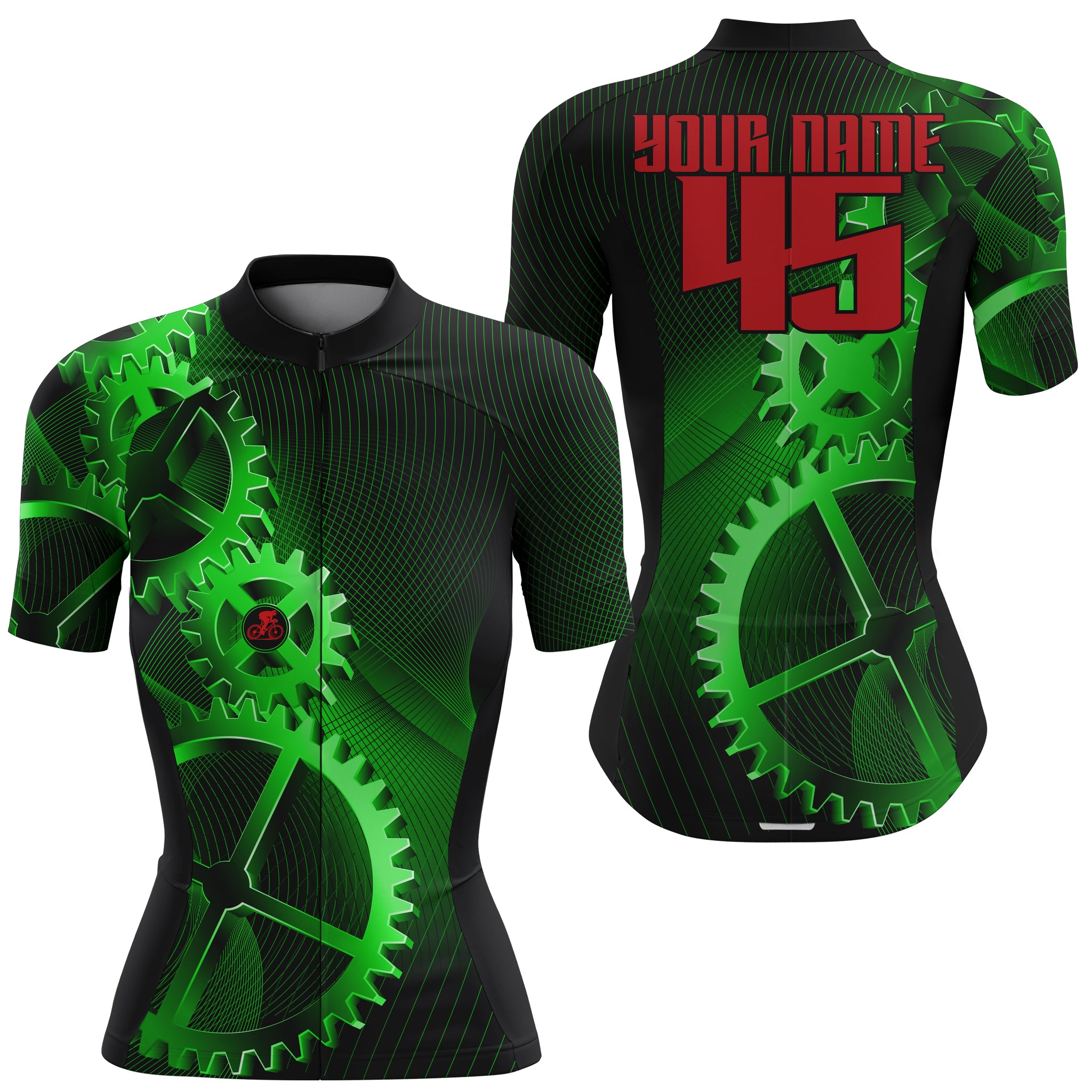 Custom Cycling Jersey Sprocket Mountain Bike Cycle Racing Bicycling Shirt Road Biking - Green| NMS835