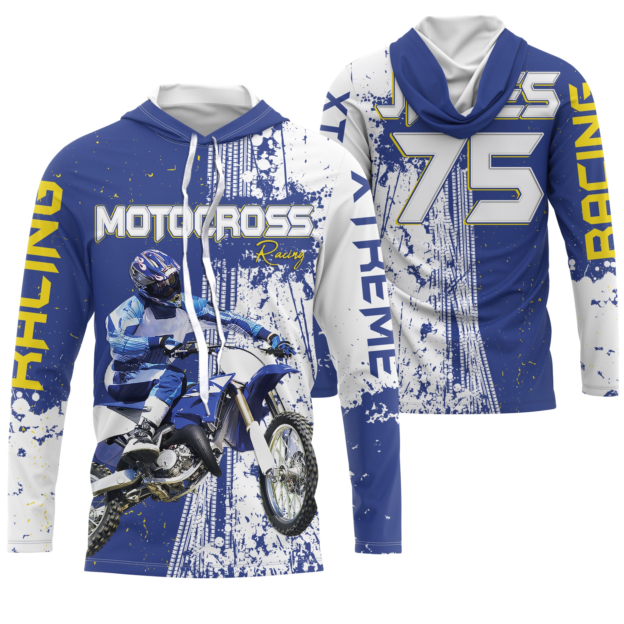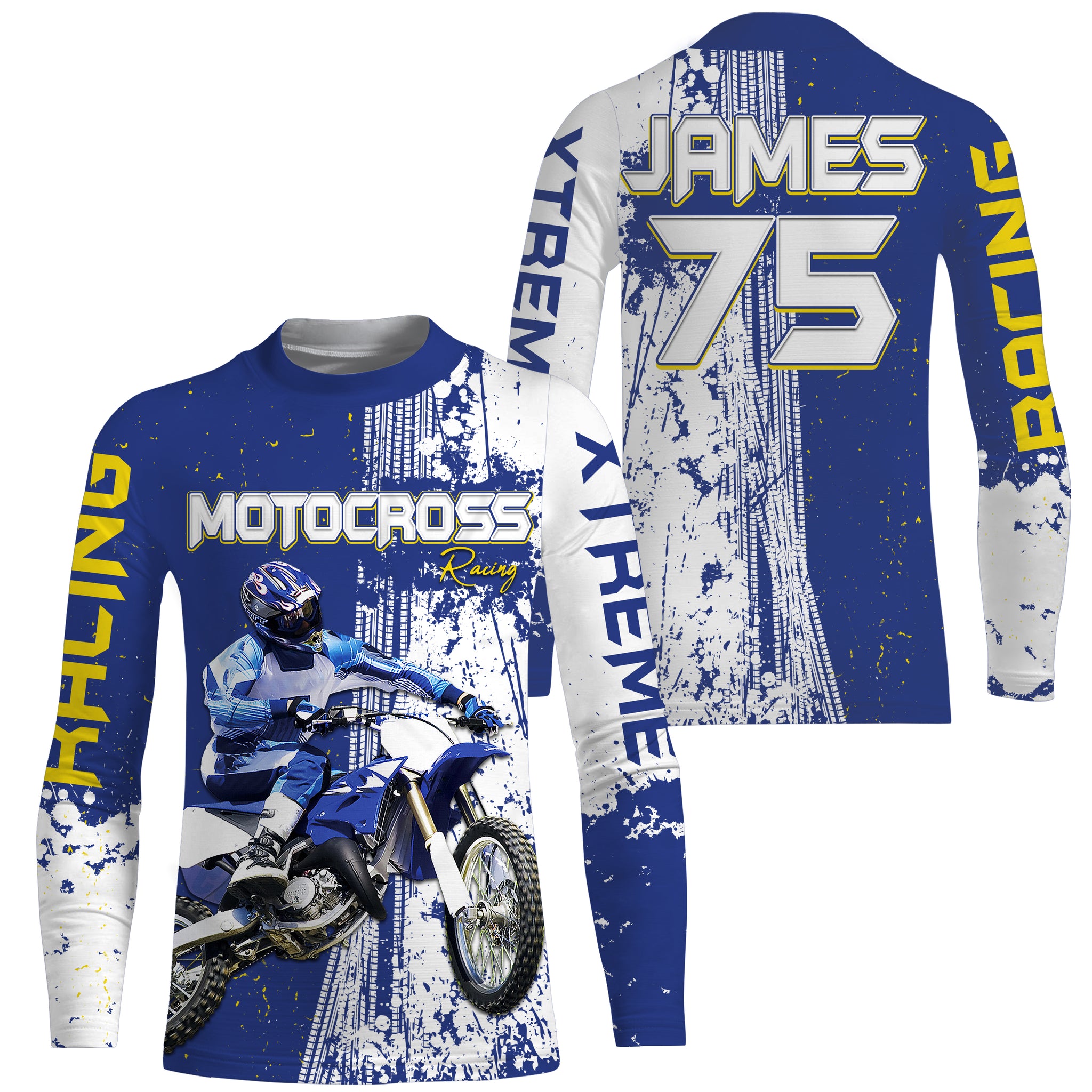 Custom Motocross jersey kid men women UV protective MX blue biker racing shirt extreme motorcycle PDT78