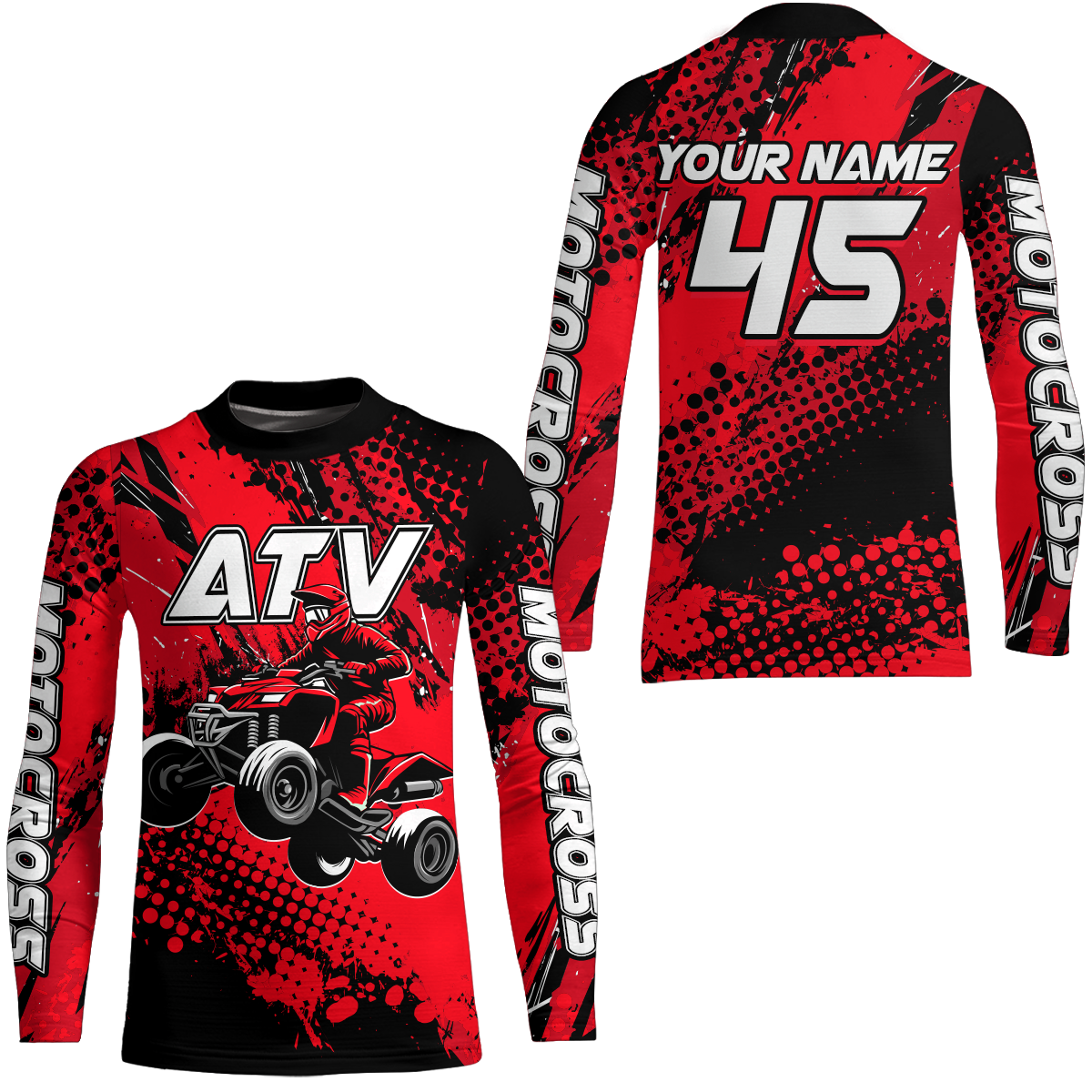 Custom Red ATV Motocross Racing Jersey Kid Adult Quad Bike Jersey Off-Road Shirt UPF30+ ATV Shirt DNT12