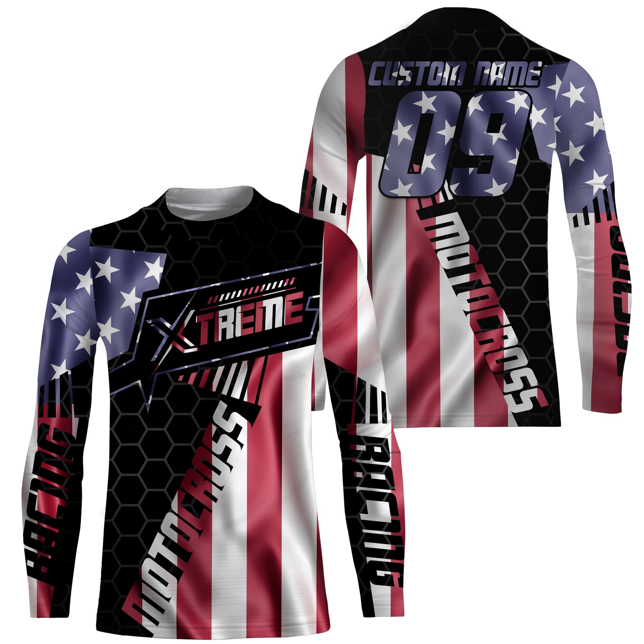 Extreme Motocross Jersey UPF30+ Personalized Patriotic MX Racing Shirt American Dirt Bike Adult&Kid | NMS733