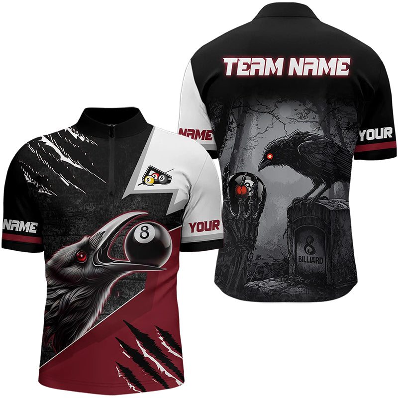 Personalized 8 Ball Pool Crows Death Billiard Shirts For Men, Scary Billiard Team Jerseys |Red TDM3151