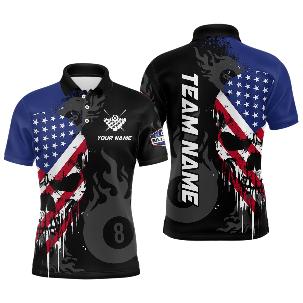 Grunge American Flag Skull 8 Ball Pool Custom Men Billiard Shirts, Patriotic Billiard Team Jerseys TDM3249