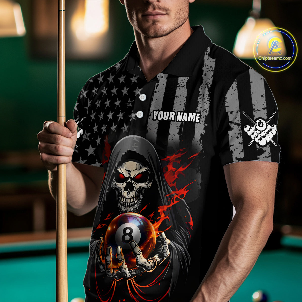 US Flag Skull Billiard Team Jersey for Men Billiard Shirt Polo & 1/4 Zip NNT40