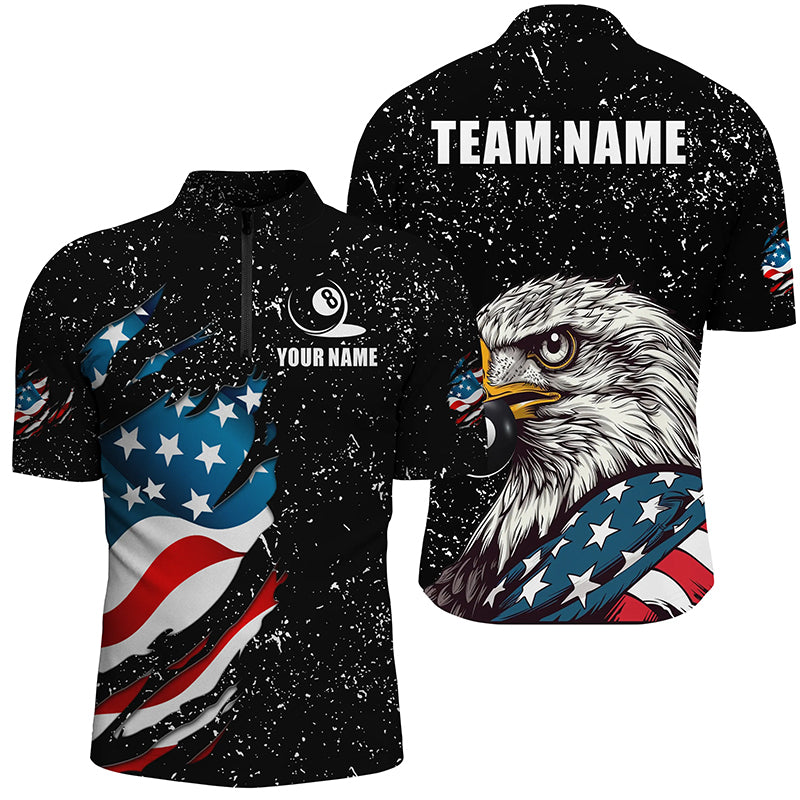 Black Grunge Eagle American Flag Custom Billiard Shirts For Men, Patriotic Billiard Team Shirts TDM2444