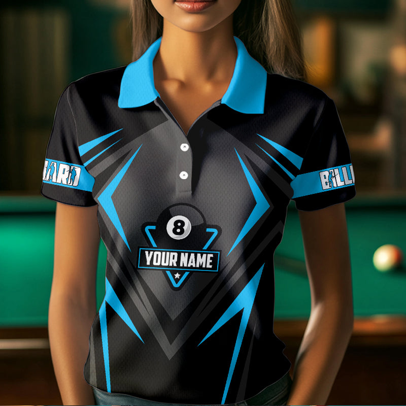 Black And Blue 8 Ball Pool Billiard Jerseys For Women Custom Polo & Quarter Zip Billiard Team Shirts TDM3388
