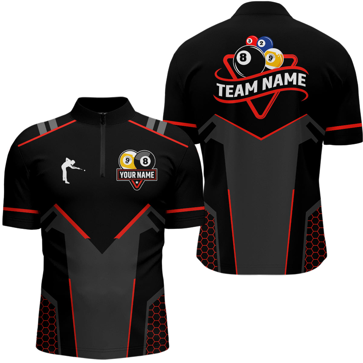 Personalized Billiard 8 Ball & 9 Ball Pool Polo, 1/4 Zip For Men Custom Team Billiard Jerseys |Red TDM3547