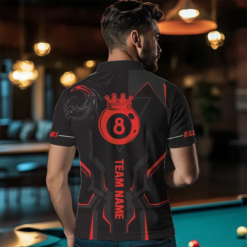 Customized 8 Ball Pool Crown Men Billiard Shirts, Red And Black Billiard Team Shirts, Pool Jerseys TDM3564
