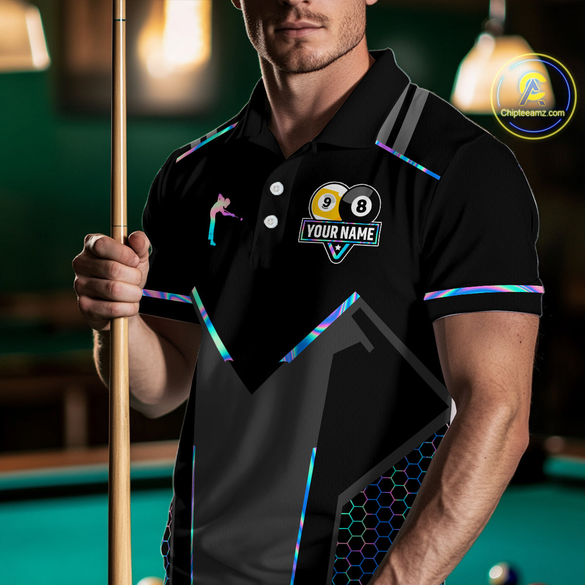 Personalized Holographic Billiard 8 Ball & 9 Ball Pool Polo, 1/4 Zip For Men, Billiard Team Jersey TDM4253