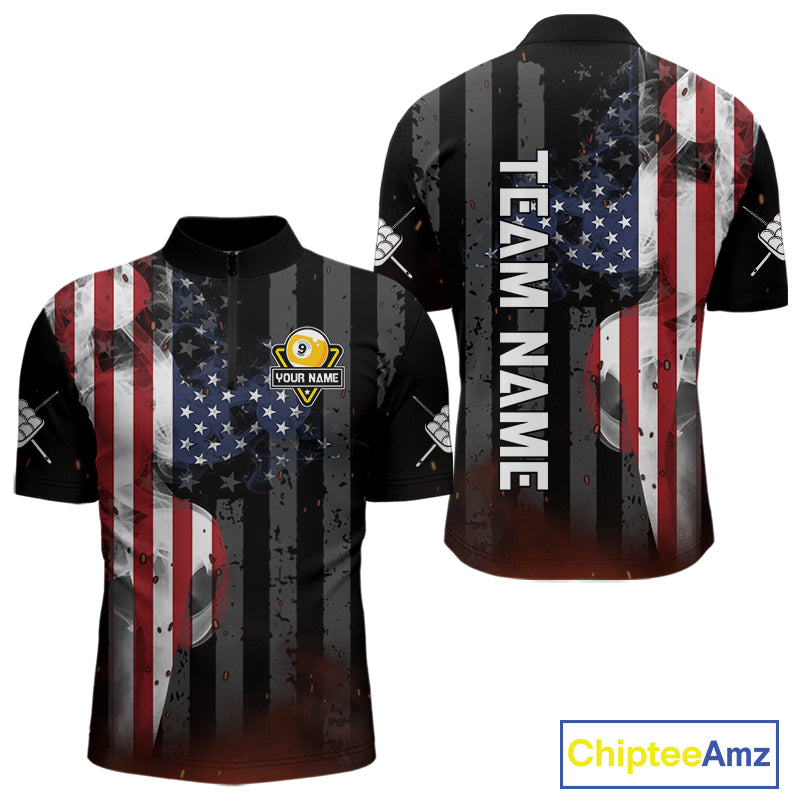 Personalized Vintage Smoke US Flag Billiard Shirts For Men, 9 Ball Pool Patriotic Billiard Jersey TDM4845