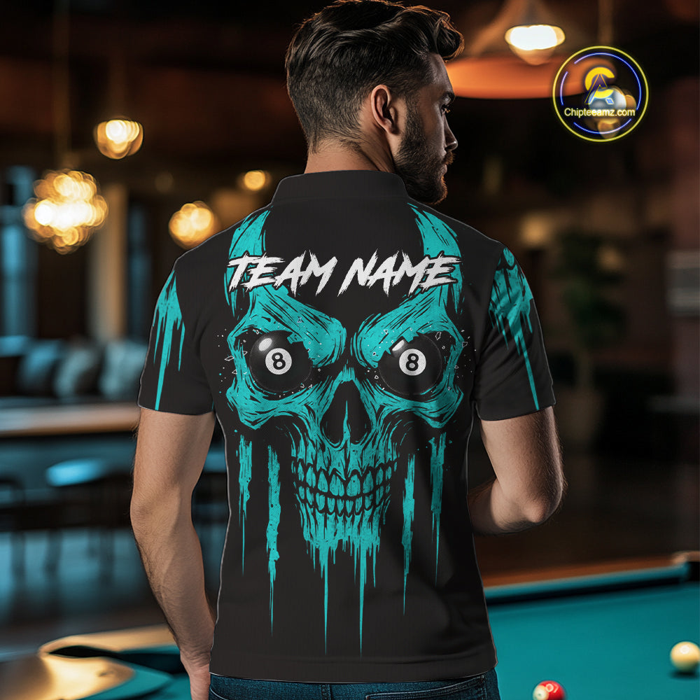 Turquoise Grunge Skull Billiard Jersey For Men Custom 8 Ball Pool Billiard Shirt Polo & 1/4 Zip TDM5074