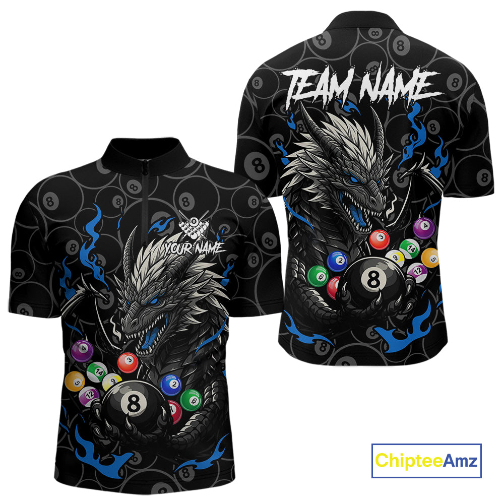 Personalized 8 Ball Dragon Billiard Shirt For Men, Billiard Team Jersey Polo & 1/4 Zip |Blue TDM5110