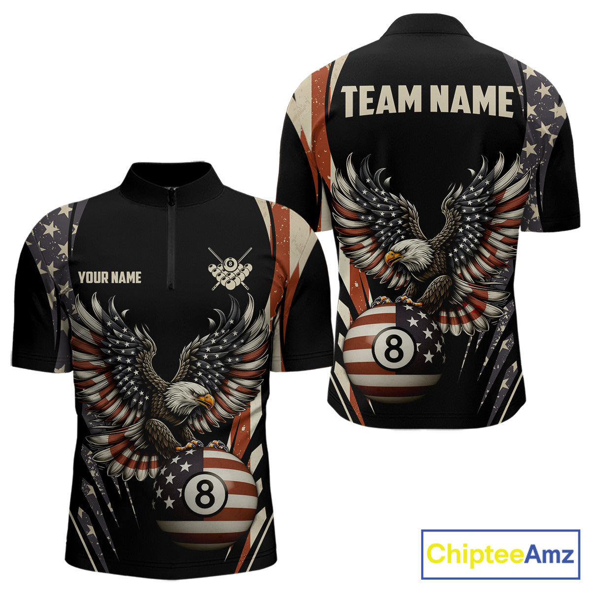 Personalized Vintage American Flag Eagle Billiard Shirt For Men, Patriotic 8 Ball Pool Team Jersey TDM5313