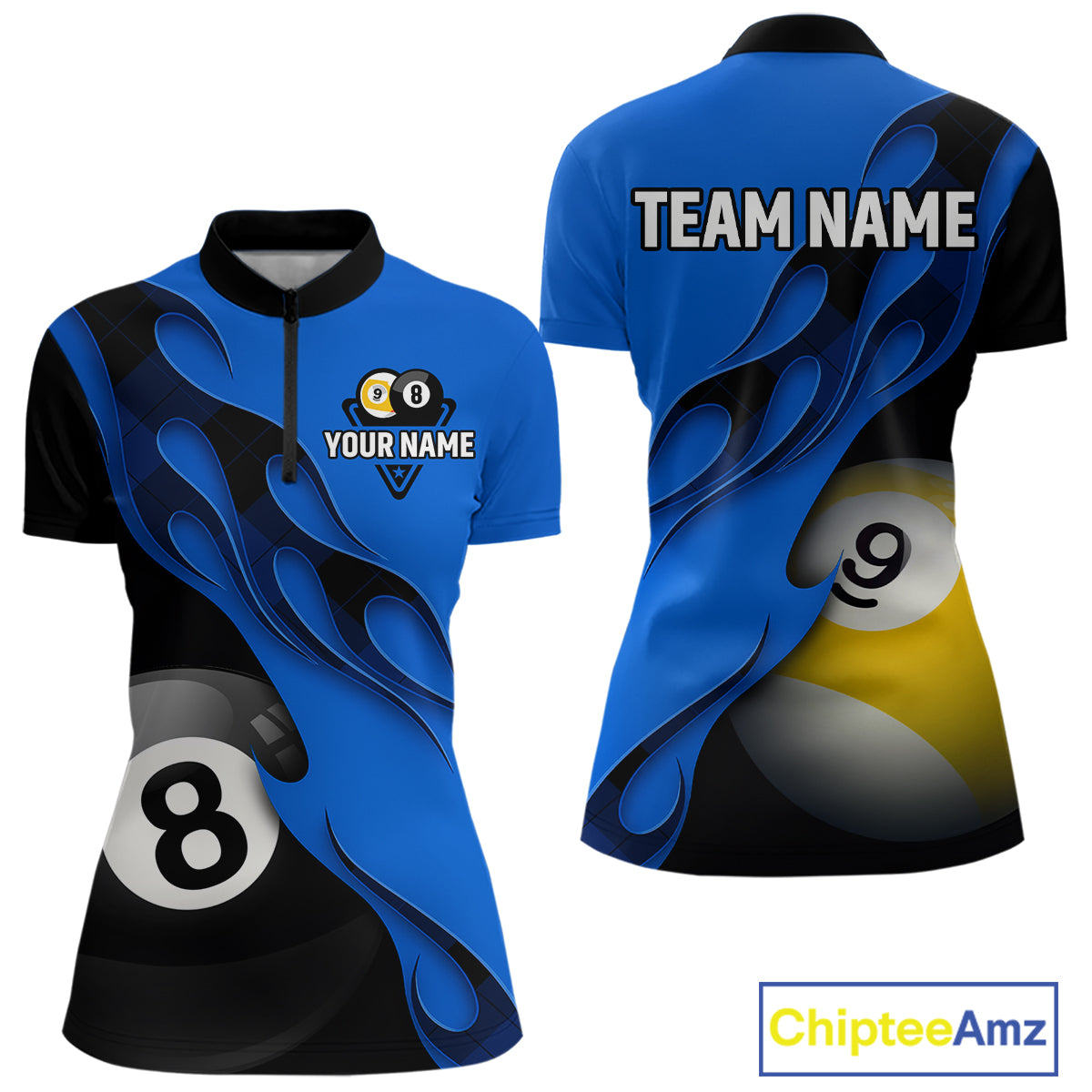 Black And Blue Billiard 8 Ball & 9 Ball Pool Shirt For Women Custom Billiard Team Jersey Uniform TDM5163