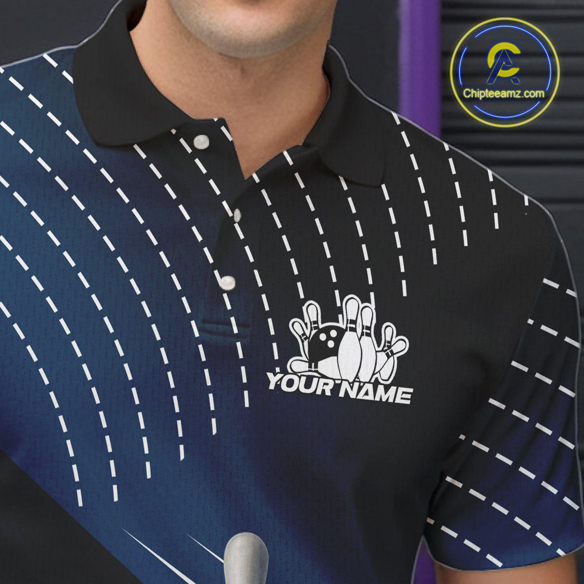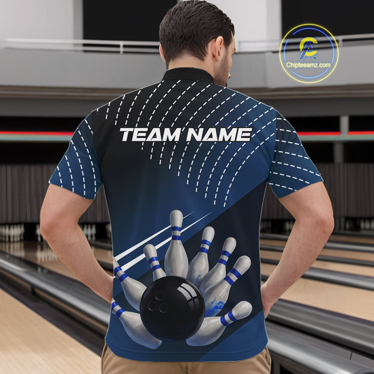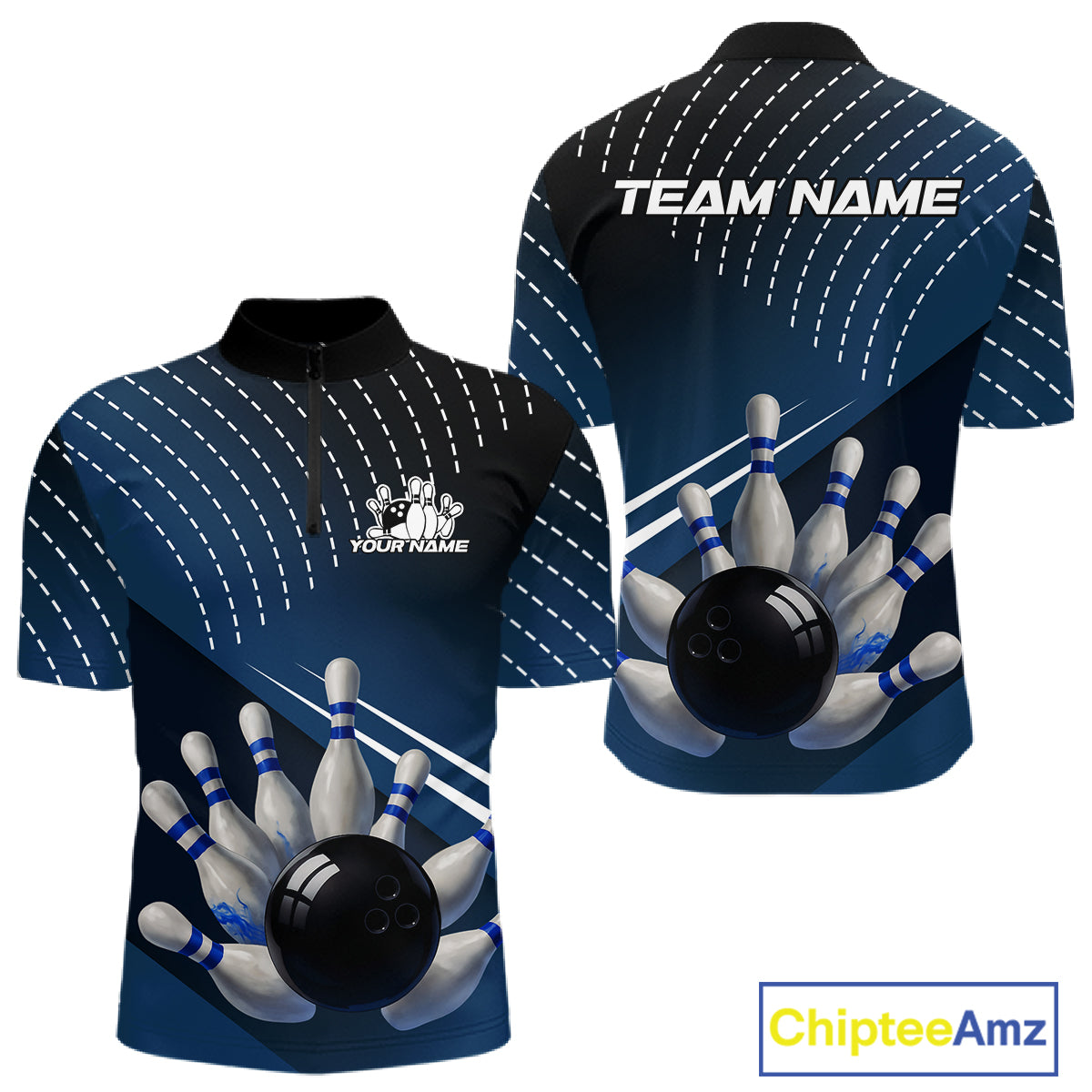Black and Blue Bowling Polo, Quarter Zip shirts For Men Custom Bowling tournament Team Jerseys NQS10625