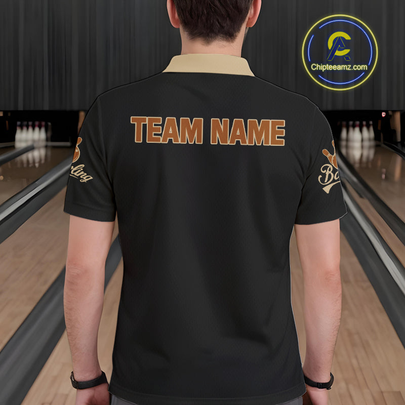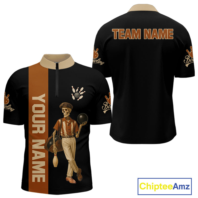 Black and Brown Skull Retro Bowling Polo, Quarter Zip Shirts For Men Custom Team Bowling Jersey NQS10859
