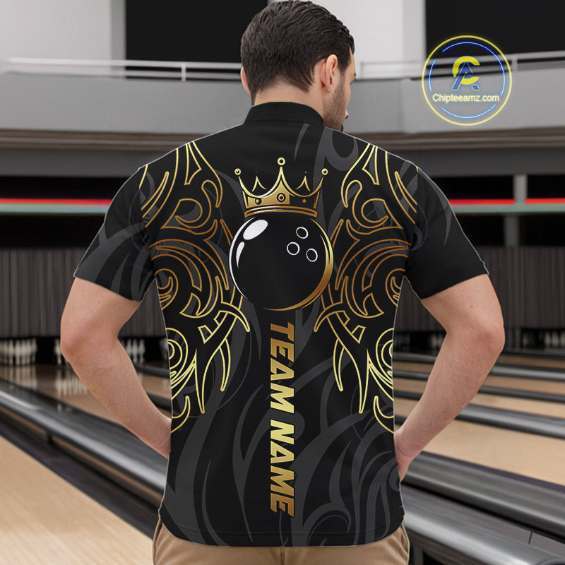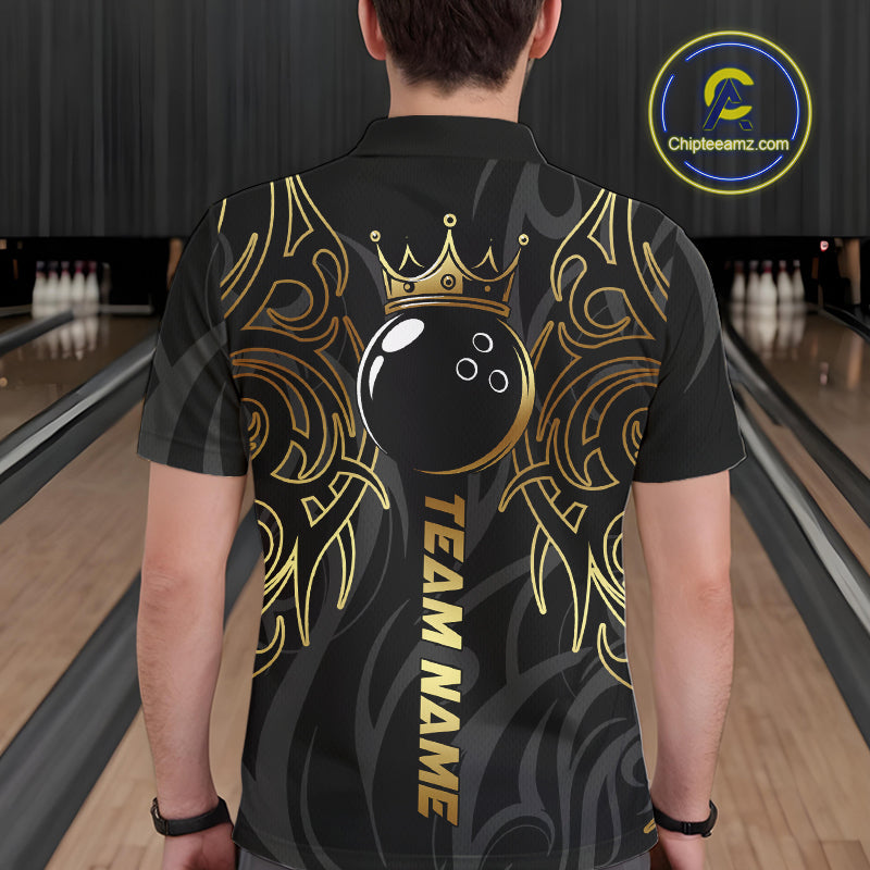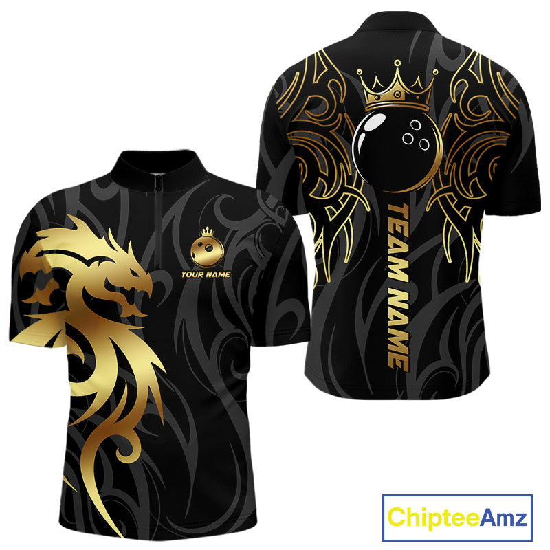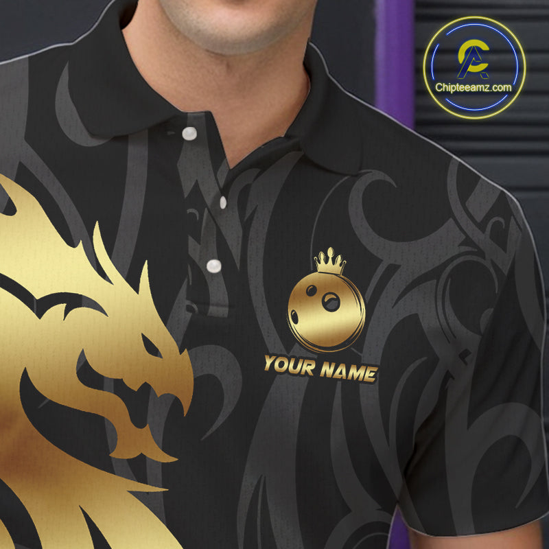Black and Gold Dragon tribal crown Bowling ball Shirts for Men Custom Bowling Team League Jerseys NQS10903