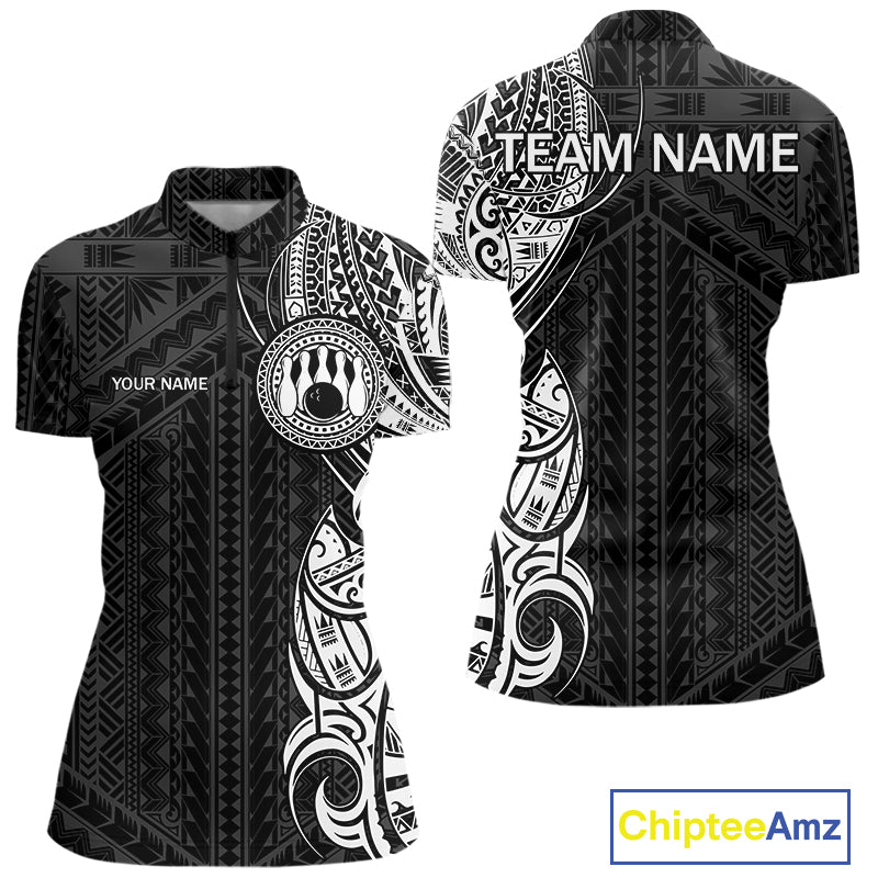 Black and White Tribal pattern Women Bowling Shirts Custom Bowling outfit ladies Team bowling jerseys NQS10648