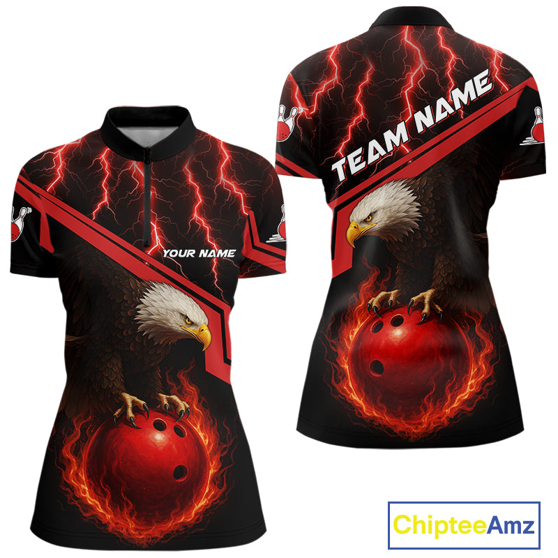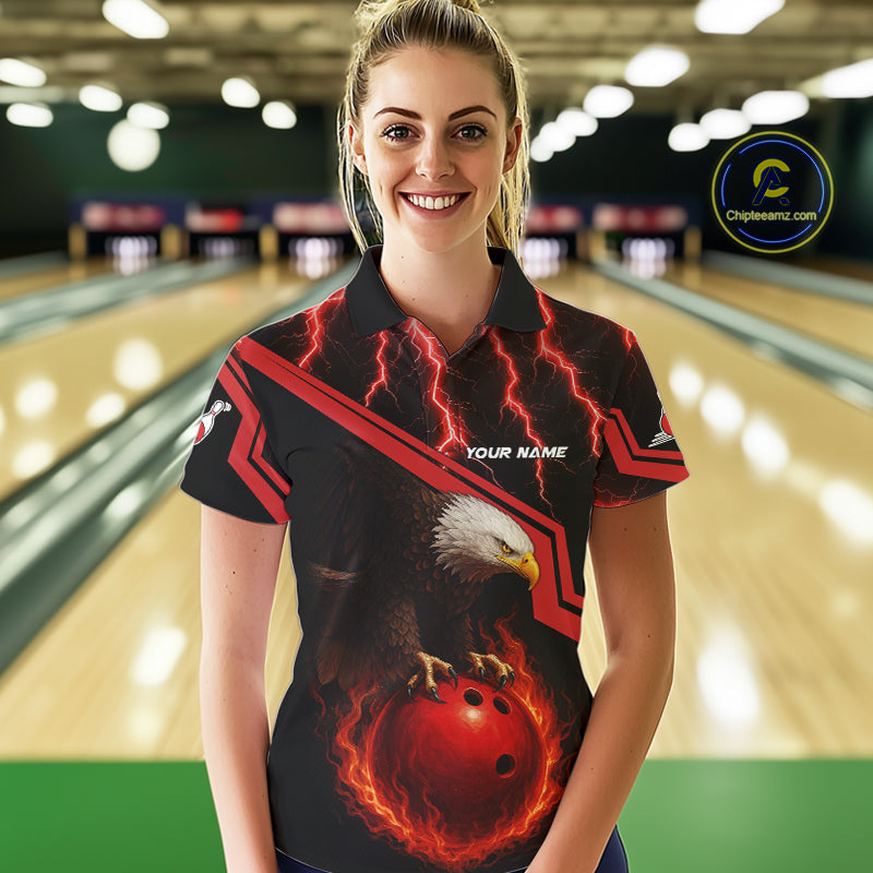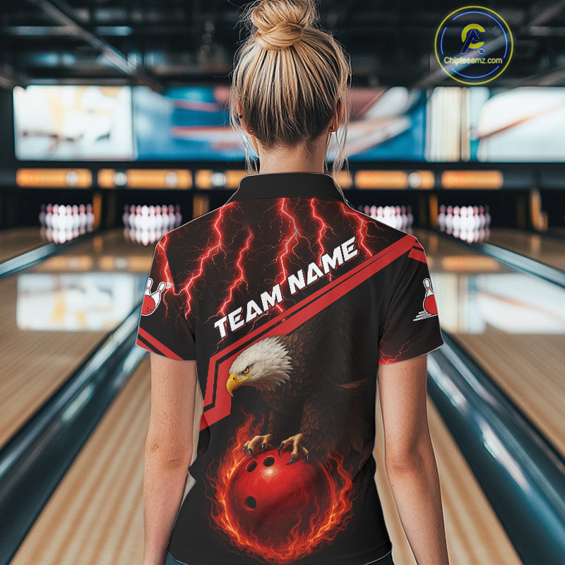 Black & Red Flame Lightning Thunder Eagle Bowling Shirts for Women Custom Bowling Team League Outfit NQS10917