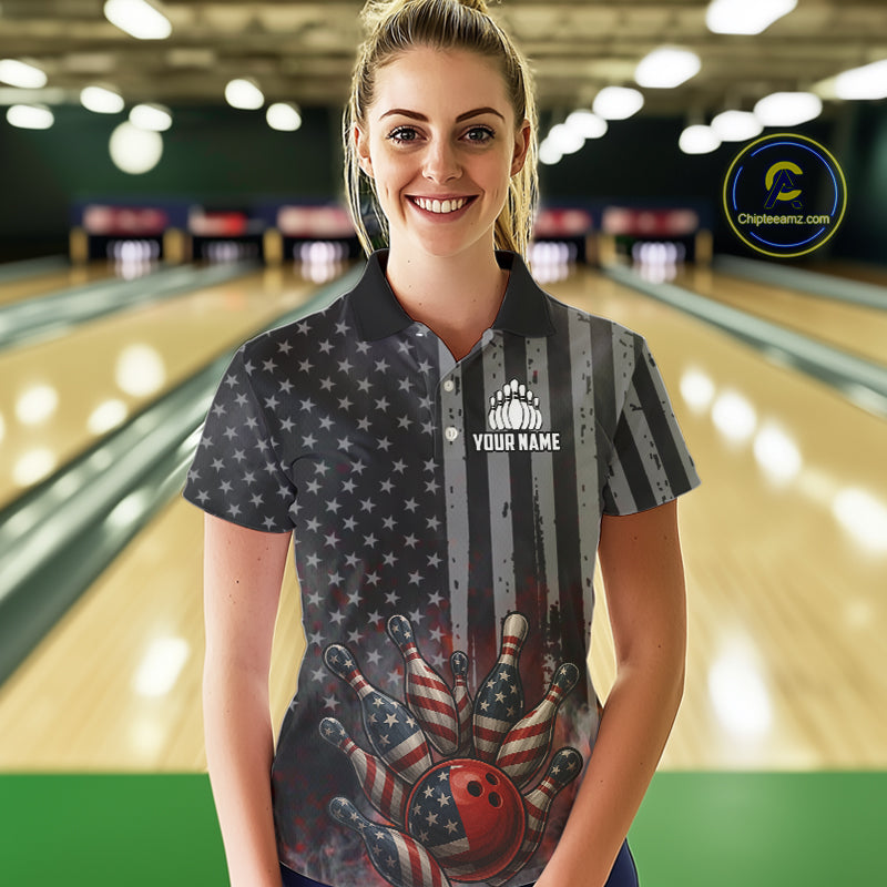 Black Smoke American Flag Bowling wings Shirts For Women Custom Patriotic Bowling Team League Jersey NQS10632