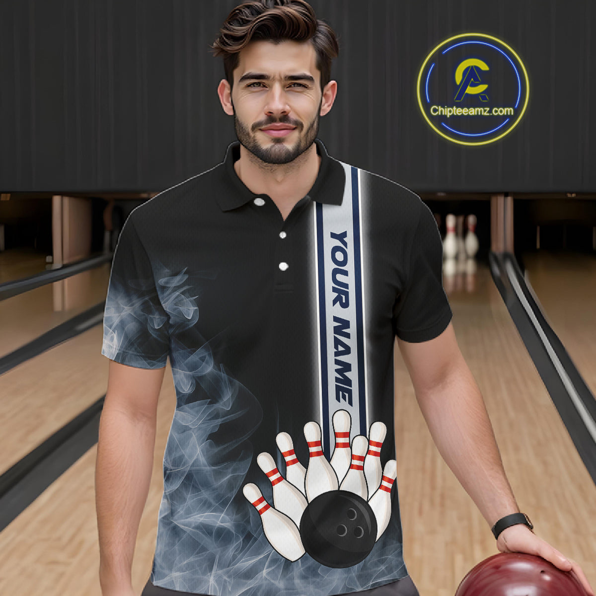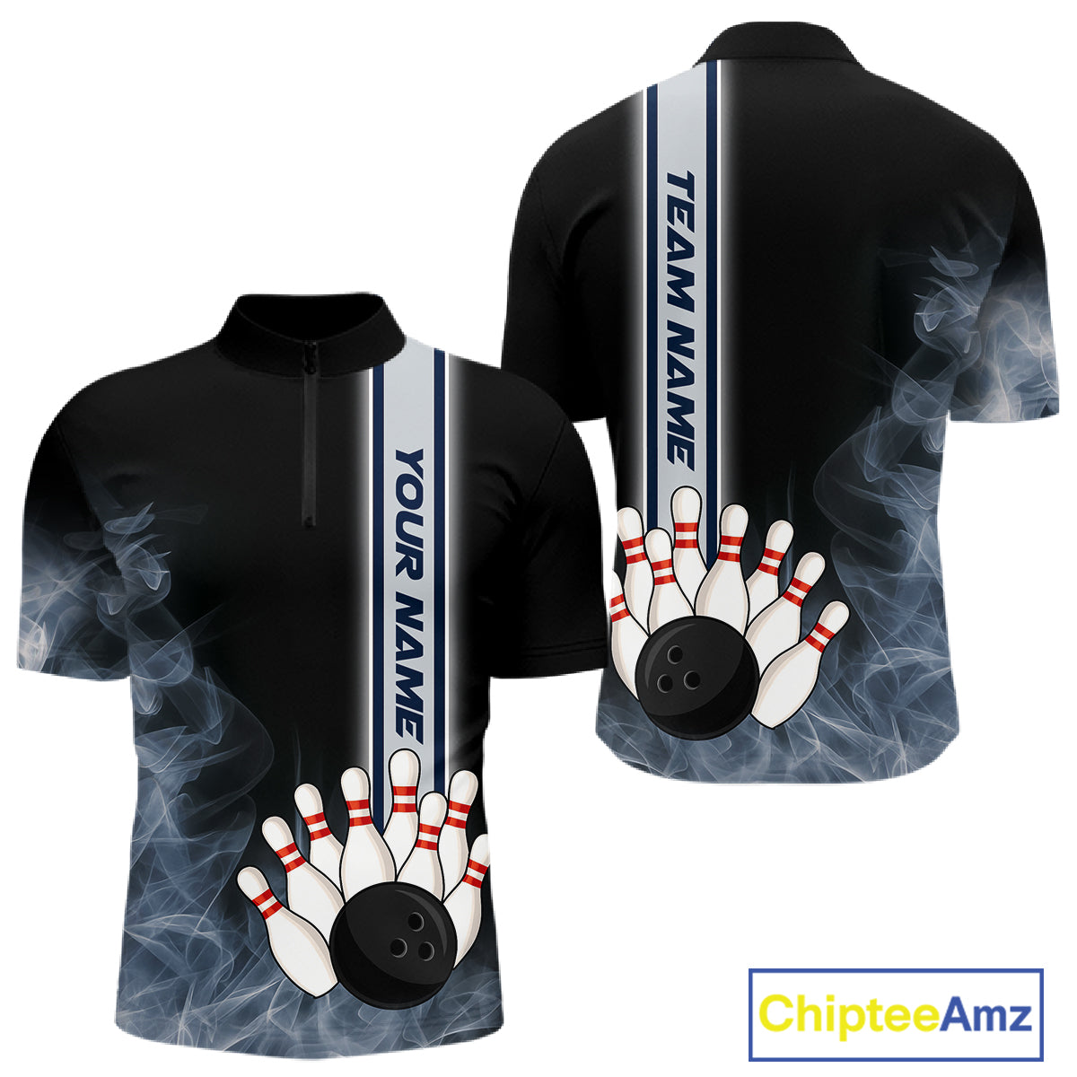 Black Smoke Bowling Polo, Quarter Zip Shirts For Men Custom Team Bowling Tournament Jerseys NQS10681