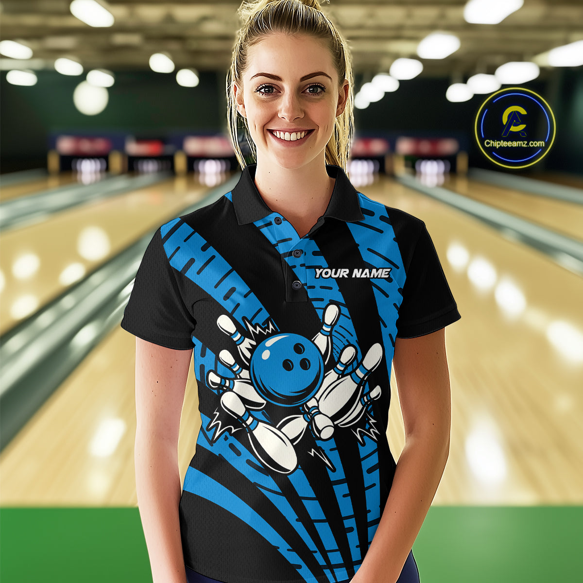 Custom Black and Blue camo Bowling Polo, Quarter Zip Shirt For Women Custom Team bowling jerseys NQS10608