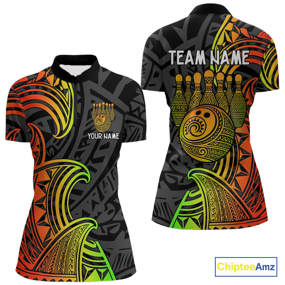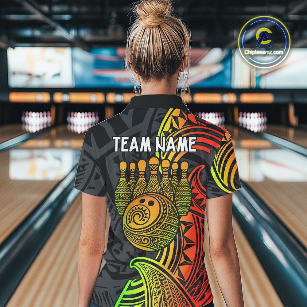 Personalized Black and Colorful Tribal pattern Bowling Shirts For Women Custom Team Bowling Jersey NQS10764