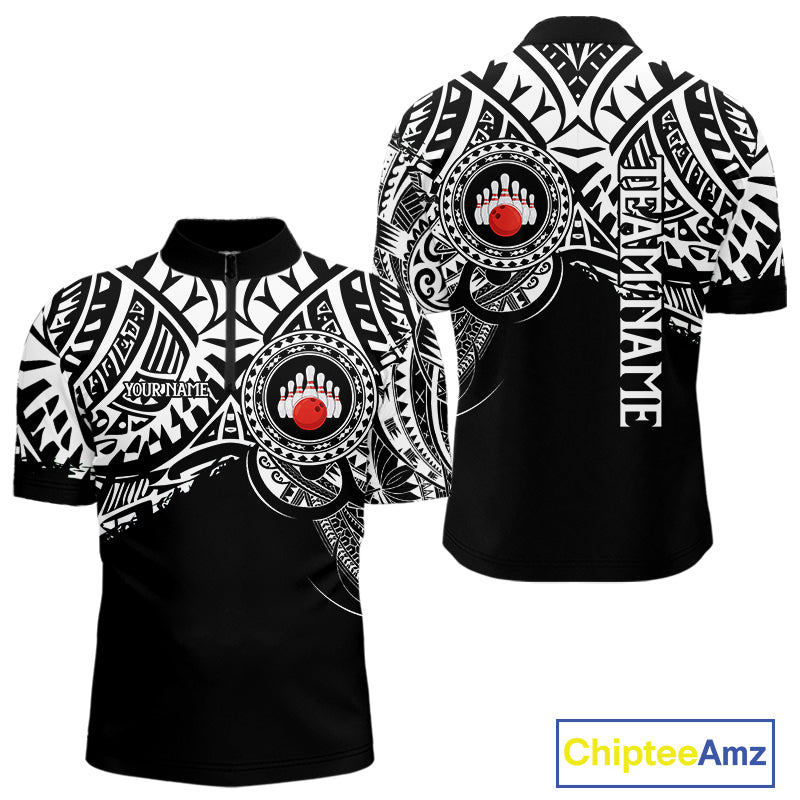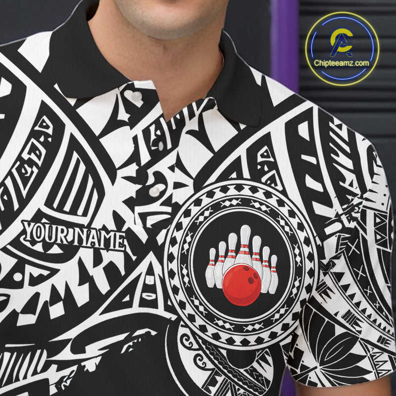 Personalized Black and White Tribal pattern Mens Bowling Shirts Custom Team Bowling outfit for men NQS10761