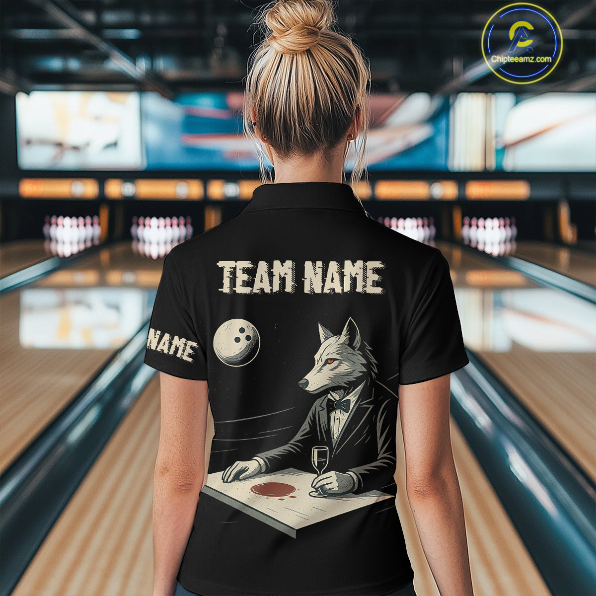 Personalized Black Wolf Bowling Jersey for Women Bowling Team Shirt Polo & 1/4-Zip Bowling Unisex QZT702