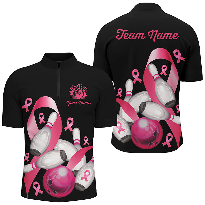 Pink ribbons Men's bowling shirt Custom Breast Cancer Awareness black team league bowling jerseys NQS8308