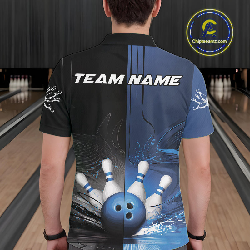 Half Black Half Blue Custom Bowling Team Polo Shirts For Men, Bowling Tournament Shirt IPHW9446