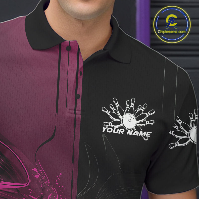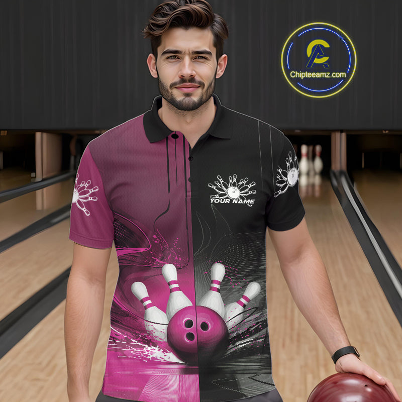 Half Black Half Pink Custom Bowling Team Polo Shirts For Men, Bowling Tournament Shirt IPHW9447