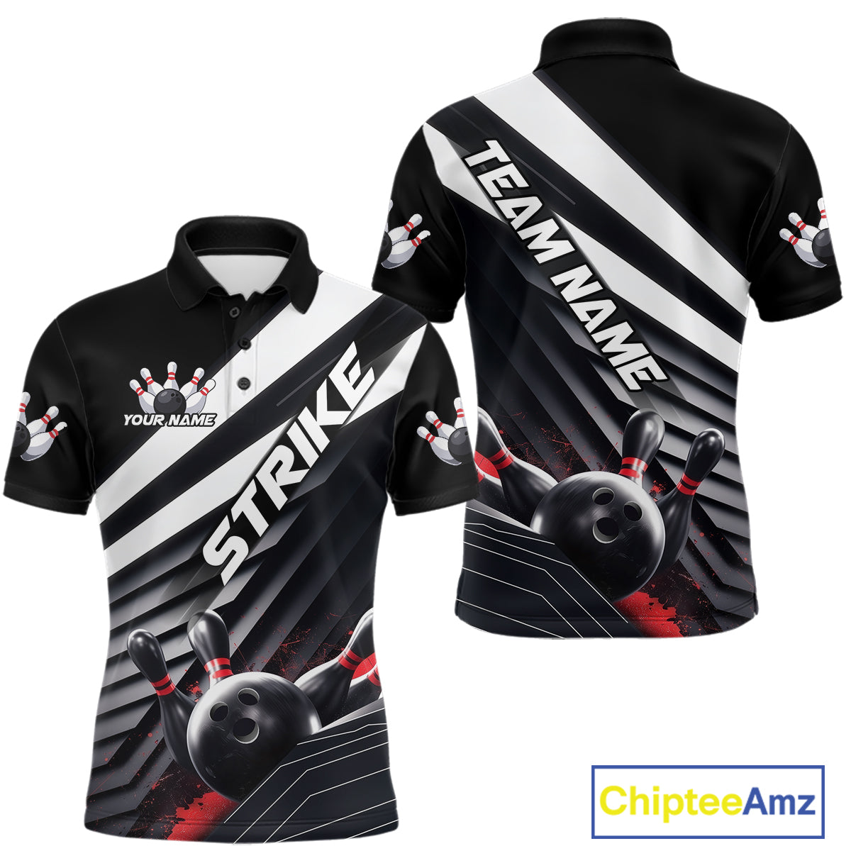 Custom Black And Red Strike Bowling Polo Shirts For Men, Bowling Team Uniform IPHW9627